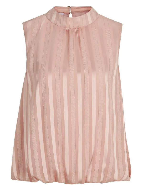Blouse type: Blouseshirt; Design: Gevoerde zoom/rand; Type sluiting: Open; Motief: Krijtstrepen; Kraag: Opstaande kraag; Extra's: Op staal naden; Pasvorm: Normale pasvorm; Armlengte: Mouwloos; Lengte: Normale lengte