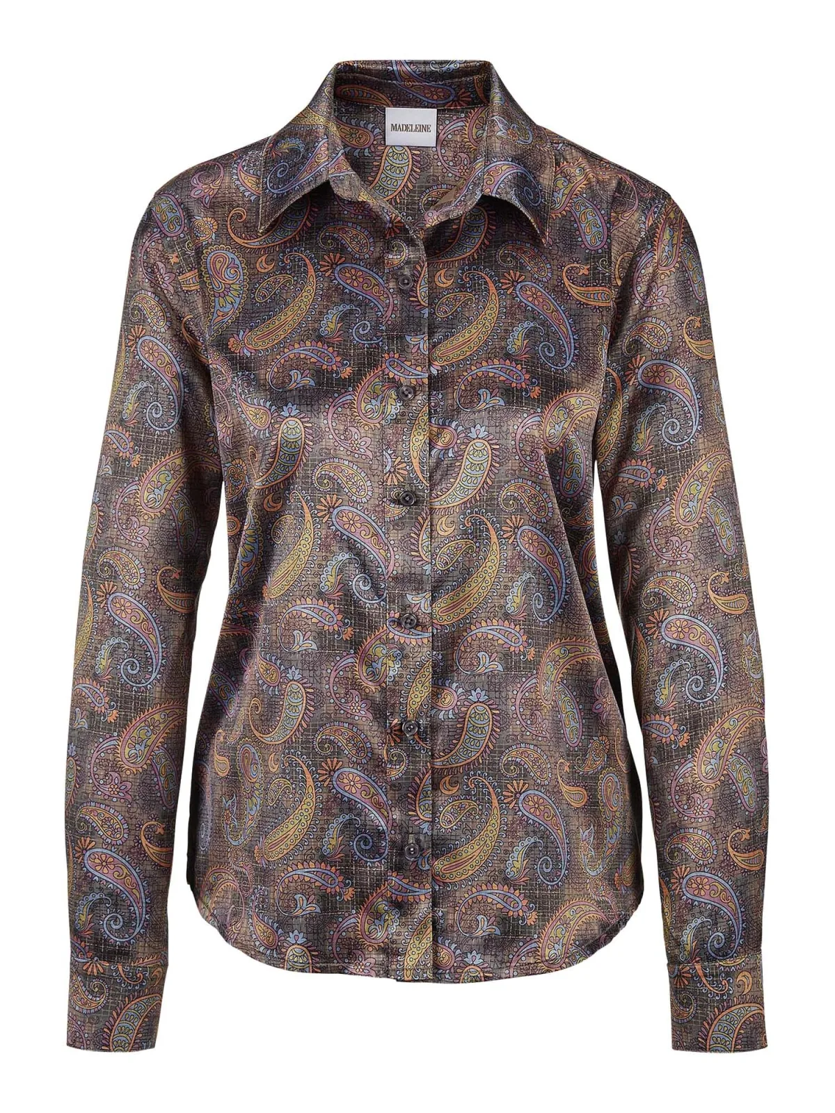 Blouse type: Klassieke blouse; Design: 1-knoops manchetten, Rugplooi; Type sluiting: Knoopsluiting; Materiaal: Satijn; Motief: Paisley; Kraag: Kentkraag; Extra's: All-over patroon; Pasvorm: Normale pasvorm; Armlengte: Lange mouw; Lengte: Normale lengte