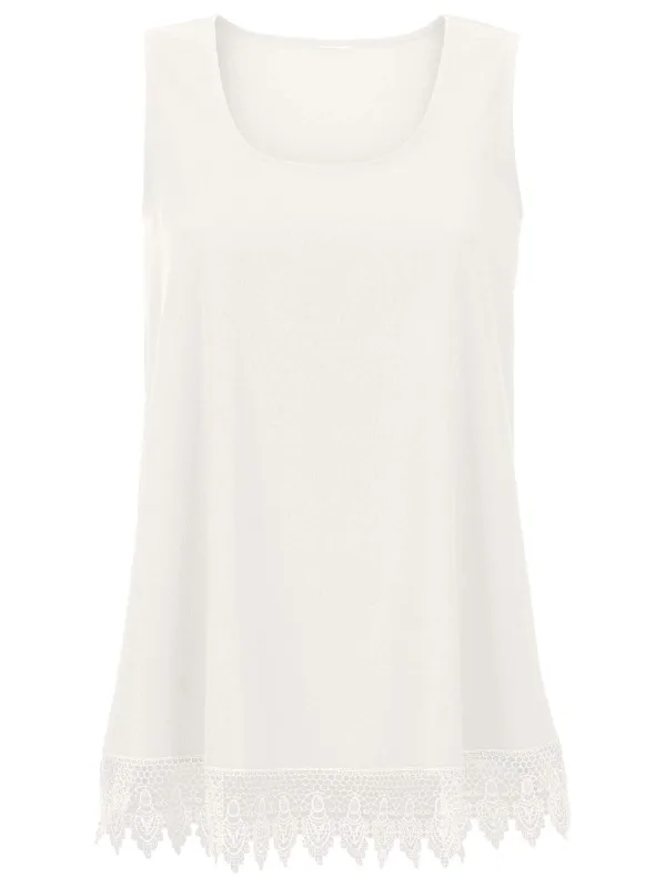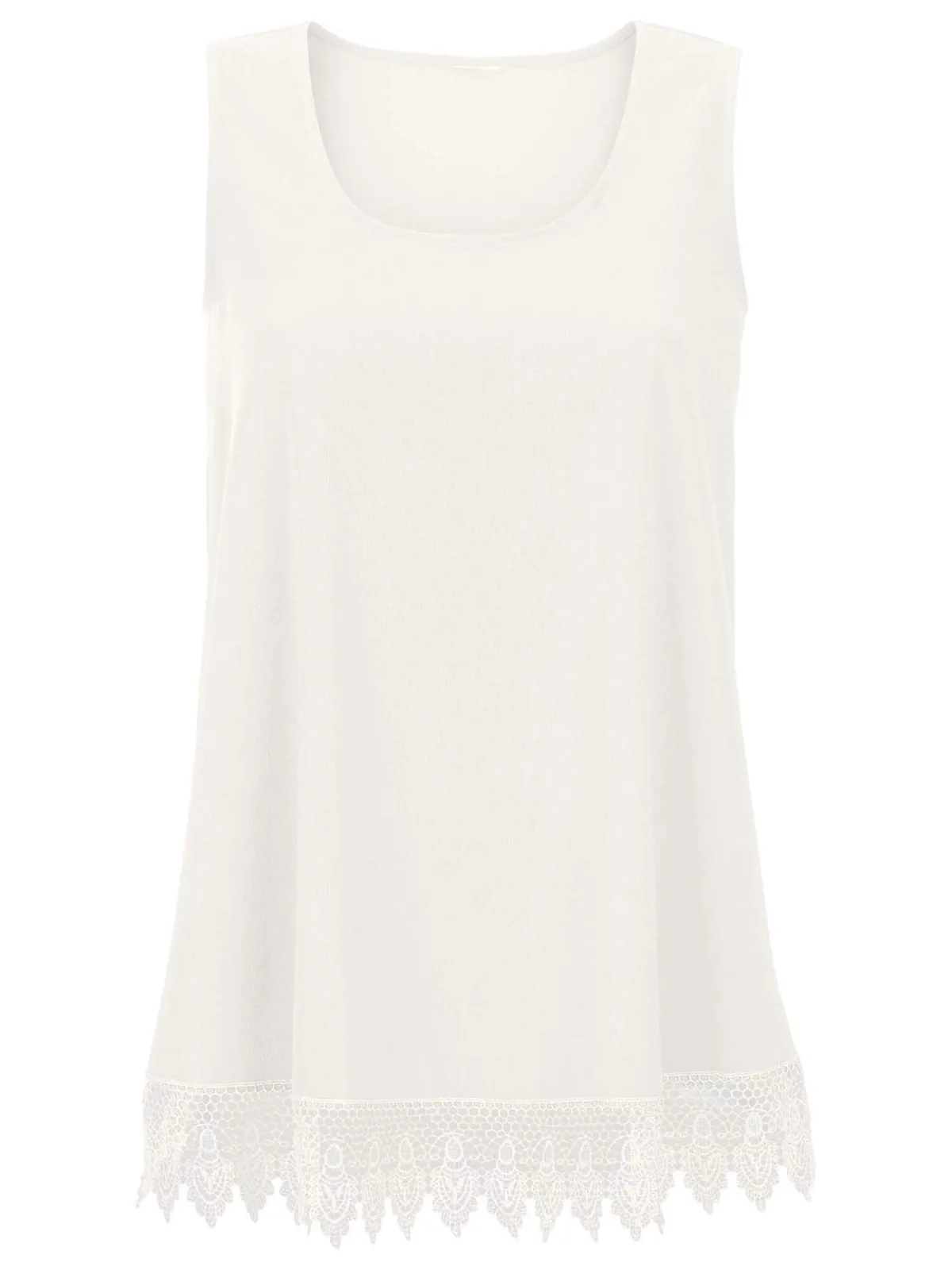 Blouse type: Blouseshirt; Design: Zoom/rand met boord; Type sluiting: Open; Motief: Effen; Kraag: Zonder kraag; Details: Kant; Extra's: Op staal naden; Pasvorm: Losse pasvorm; Armlengte: Mouwloos; Lengte: Normale lengte