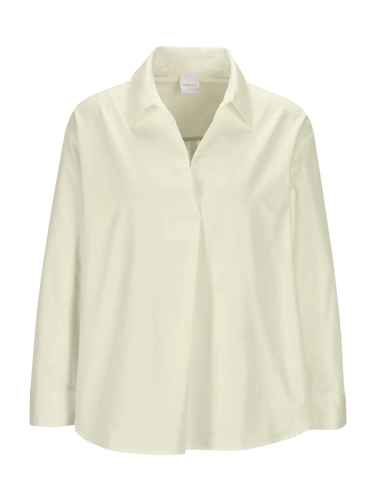 Blouse type: Wijde blouse; Design: 1-knoops manchetten, Rugplooi, Ronde zoom; Materiaal: Katoen; Motief: Effen; Kraag: Tuniek kraag; Details: Plooien; Extra's: Gladde stof, Voelt zacht aan, Huidvriendelijk materiaal; Pasvorm: Losse pasvorm; Armlengte: Lange mouw; Lengte: Normale lengte