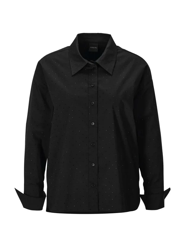 Blouse type: Klassieke blouse; Design: 2-knoops manchetten, Knop placket; Type sluiting: Knoopsluiting; Materiaal: Katoen; Motief: Effen; Kraag: Kentkraag; Details: Sierstenen, Plooien; Extra's: Op staal naden; Pasvorm: Normale pasvorm; Armlengte: Lange mouw; Lengte: Normale lengte