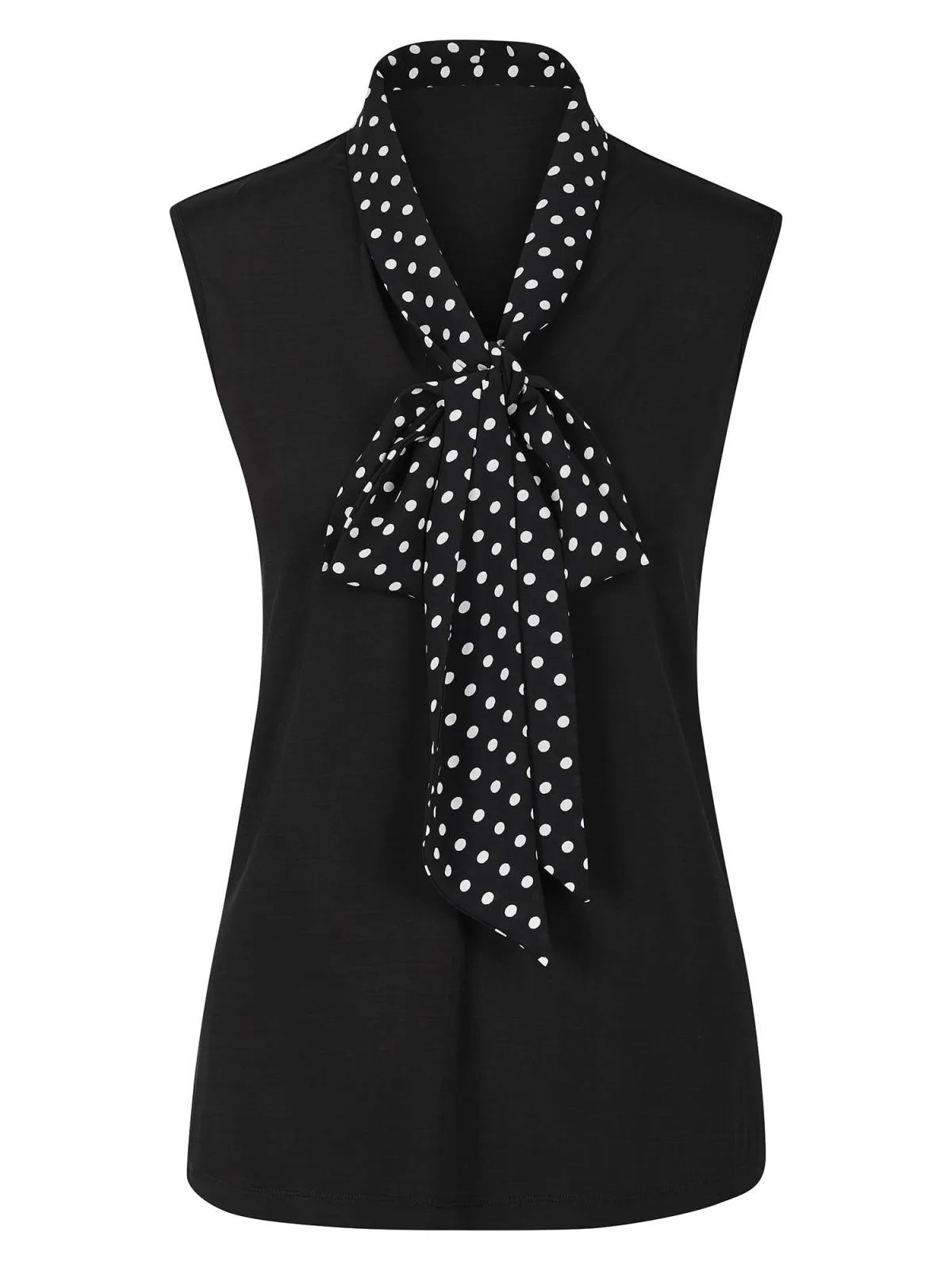 Blouse type: Blouseshirt; Design: Gevoerde zoom/rand; Materiaal: Viscose; Motief: Effen; Kraag: Strik; Extra's: Voelt zacht aan; Pasvorm: Normale pasvorm; Armlengte: Mouwloos; Lengte: Normale lengte