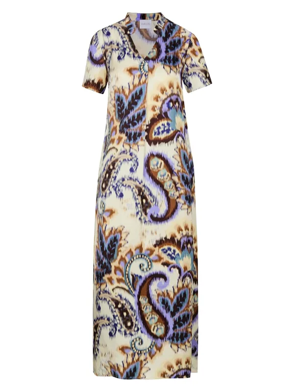 Design: Gevoerde zoom/rand; Type sluiting: Open; Materiaal: Viscose; Motief: Bloemenprint; Kraag: Tuniek kraag; Extra's: Gladde stof; Lengte: Lang/maxi; Snit: Recht; Pasvorm: Losse pasvorm; Armlengte: Kwartmouw