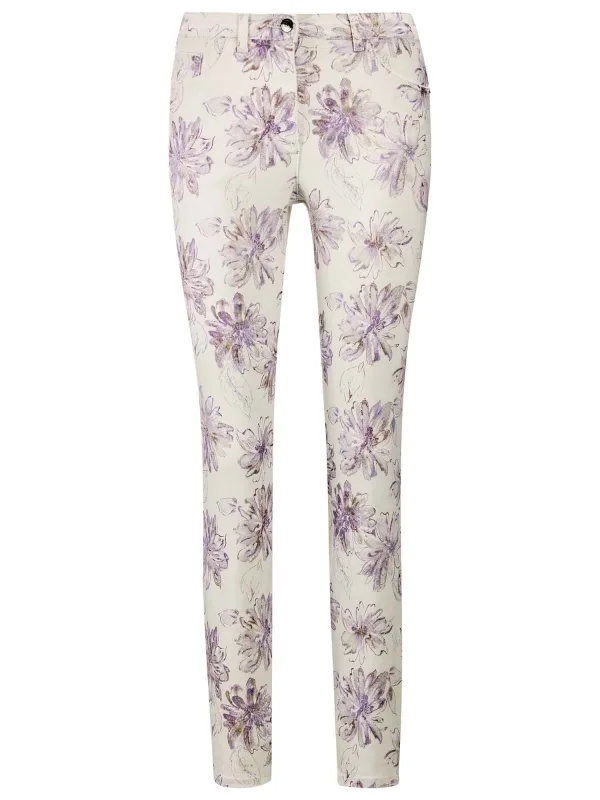 Design: Elastische taille/zoom; Type sluiting: Ritssluiting; Materiaal: Katoen; Motief: Bloemenprint; Extra's: All-over patroon; Lengte: 7/8 lengte; Pasvorm: Slimfit; Taillehoogte: Mid waist