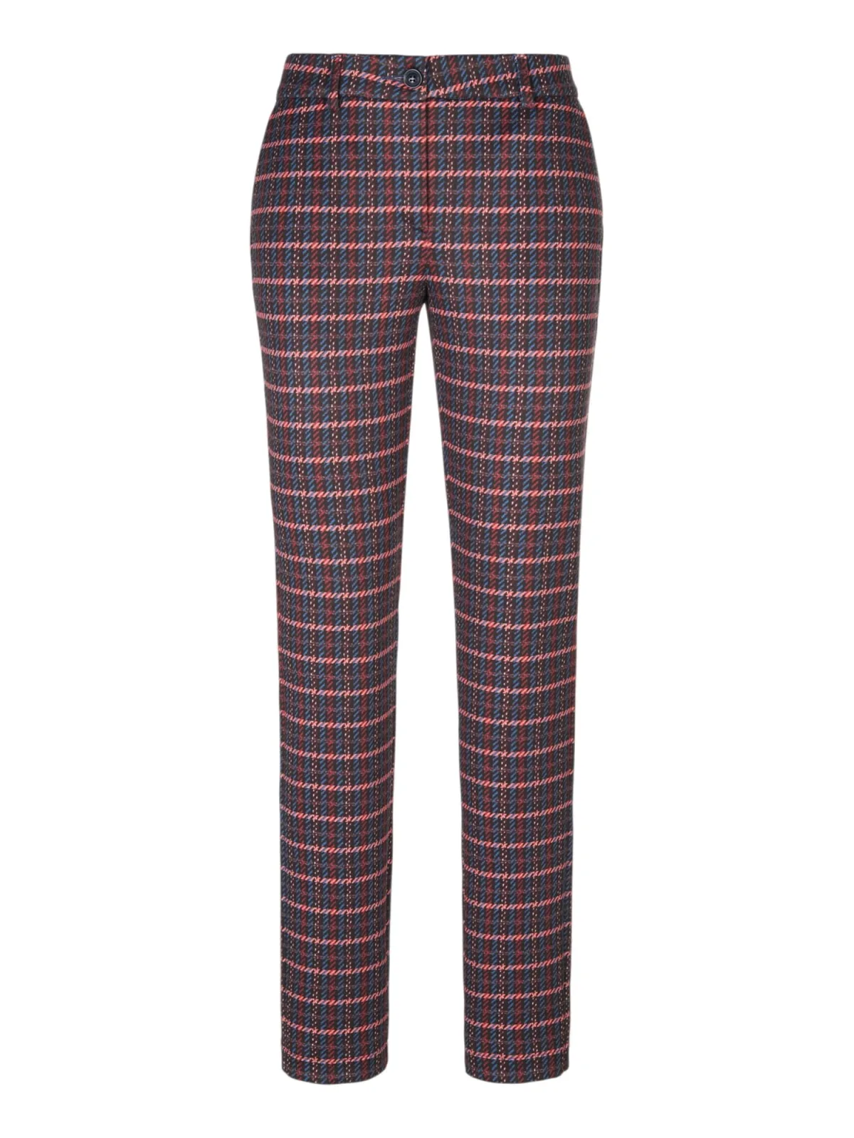 Design: Achterzak, Zakken aan de zijkant, Knop sluiting; Type sluiting: Ritssluiting; Motief: Geruit; Extra's: All-over patroon, Riemlussen; Lengte: 7/8 lengte; Pasvorm: Regular; Taillehoogte: Mid waist