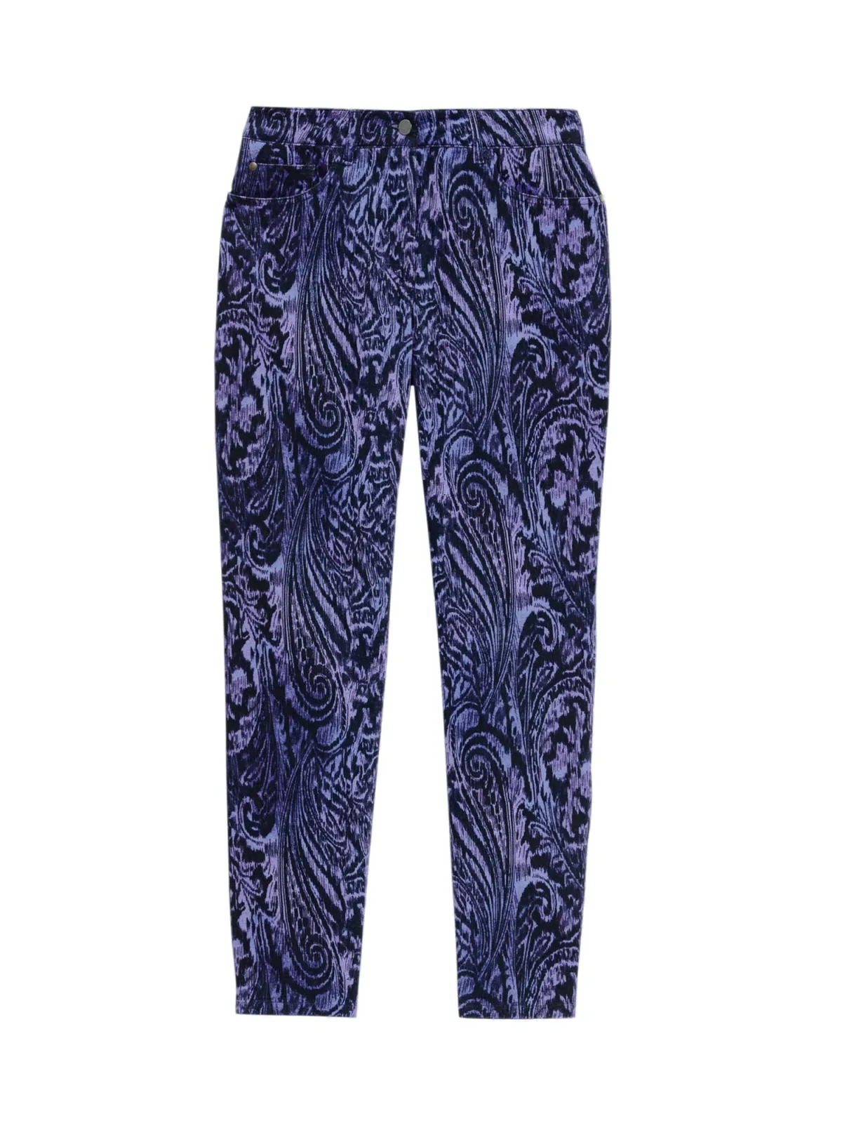 Design: Ritssluiting, 5-pocket-style; Type sluiting: Knoopsluiting; Materiaal: Katoen; Motief: Paisley; Extra's: Riemlussen; Lengte: 7/8 lengte; Pasvorm: Tapered; Taillehoogte: Mid waist