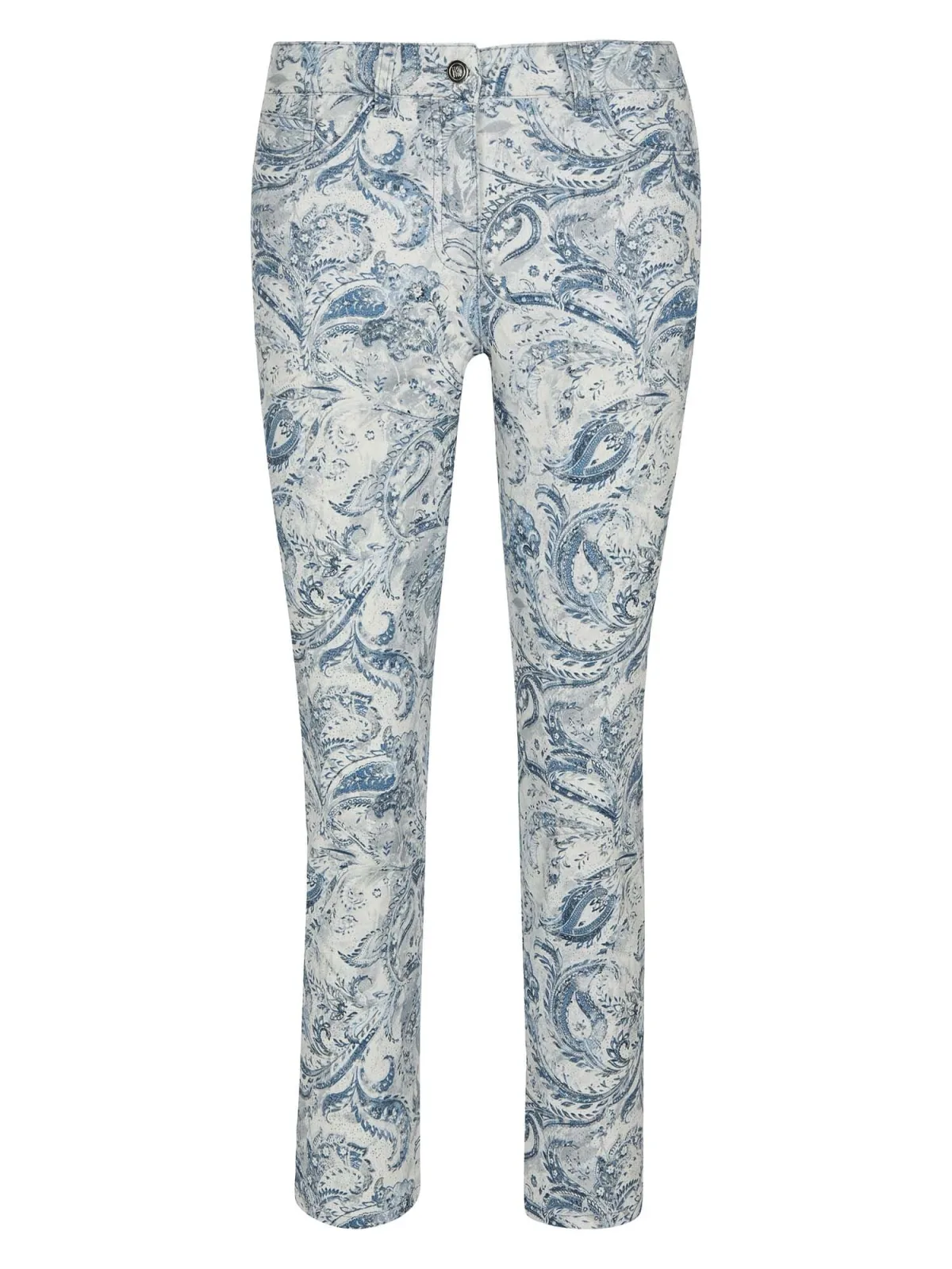 Design: Gevoerde zoom/rand, Ritssluiting, Zakken aan de zijkant; Type sluiting: Ritssluiting; Materiaal: Katoen; Extra's: All-over patroon, Riemlussen; Lengte: 7/8 lengte; Pasvorm: Slimfit; Taillehoogte: Mid waist