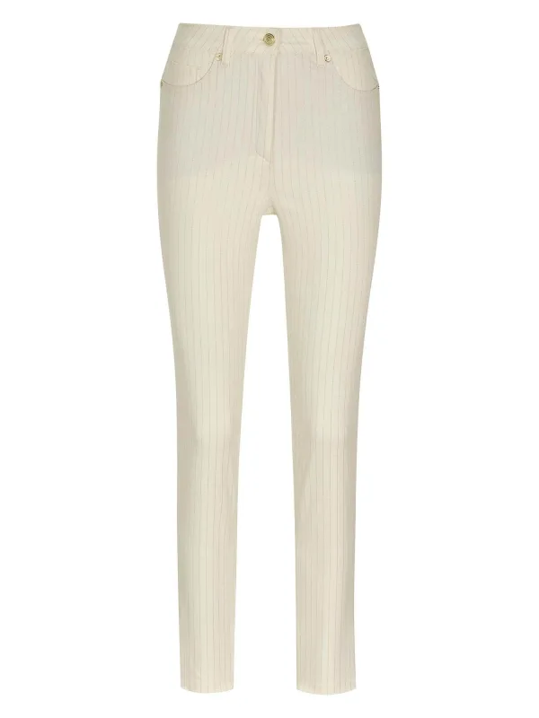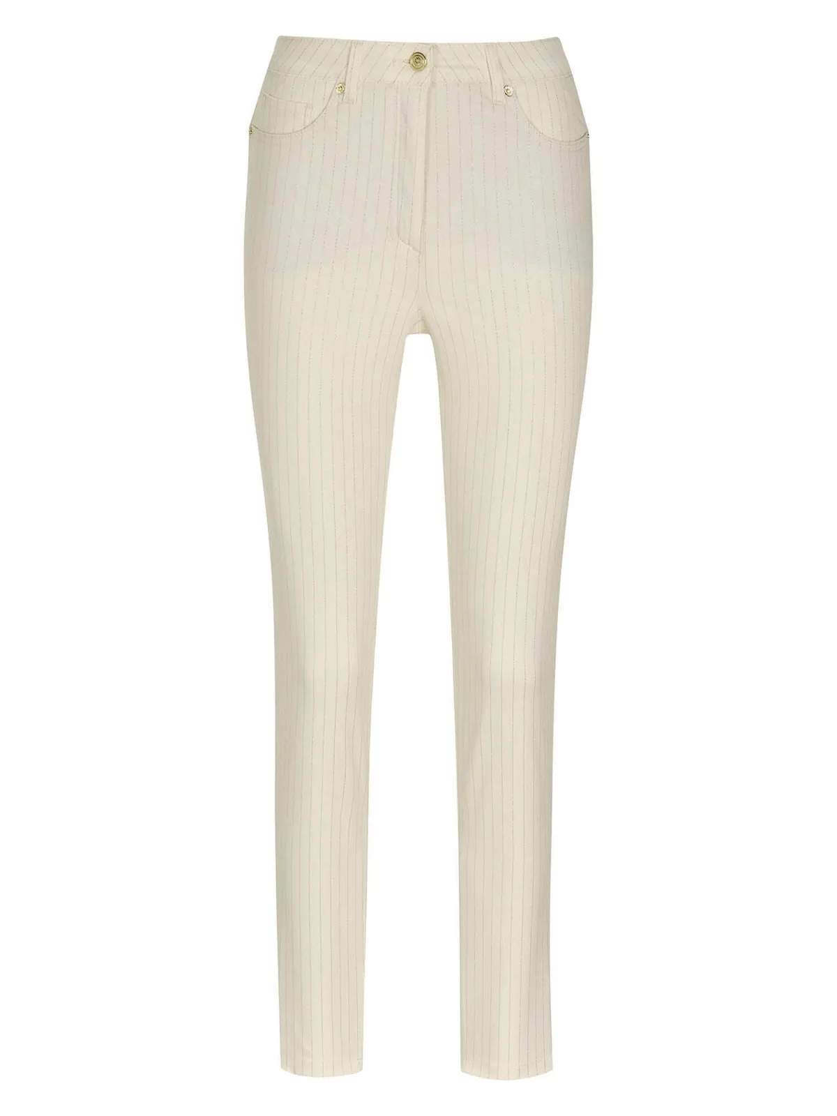 Design: Ritssluiting, 5-pocket-style, Knop sluiting; Materiaal: Katoen; Motief: Krijtstrepen; Extra's: All-over patroon, Op staal naden, Riemlussen; Lengte: Lang/maxi; Pasvorm: Tapered; Taillehoogte: Mid waist
