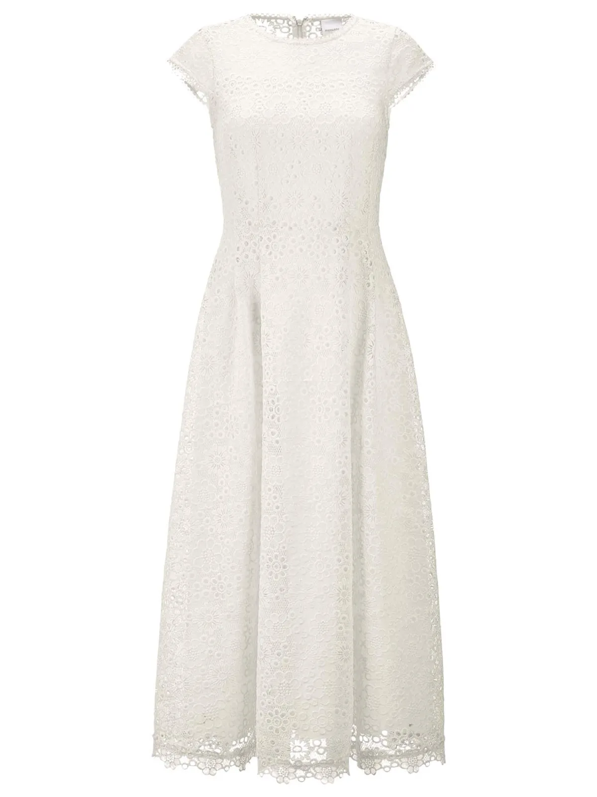 Design: Rug rits; Type sluiting: Ritssluiting; Halstype: Ronde hals; Motief: Effen; Details: Kant, Plooien; Extra's: Op staal naden; Lengte: Knielengte; Snit: Uitlopend; Pasvorm: Normale pasvorm; Armlengte: Kwartmouw