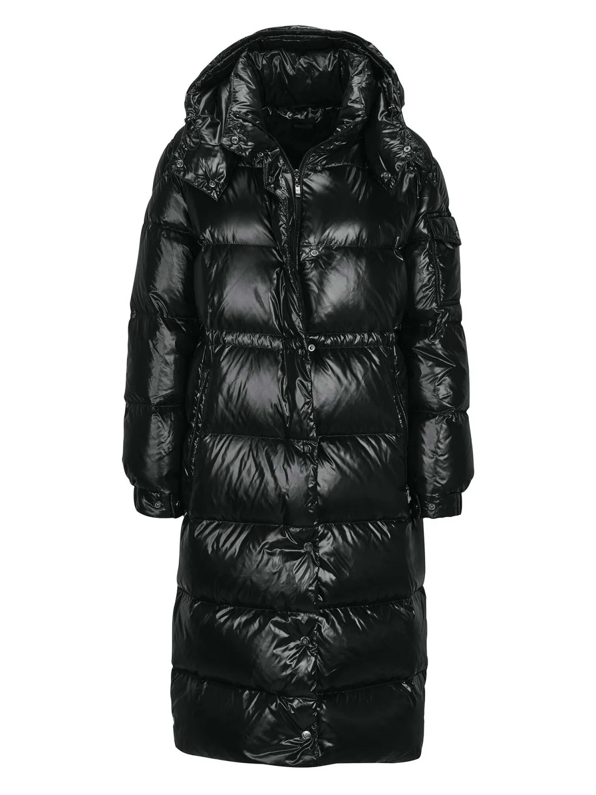 Type mantel: Gewatteerde jas; Design: Ritssluiting, Drukknopen, Zakken aan de zijkant; Type sluiting: Ritssluiting; Voering: Warm gevoerd; Motief: Effen; Extra's: Glanzend, Stiksels; Pasvorm: Normale pasvorm; Lengte: Lange pasvorm