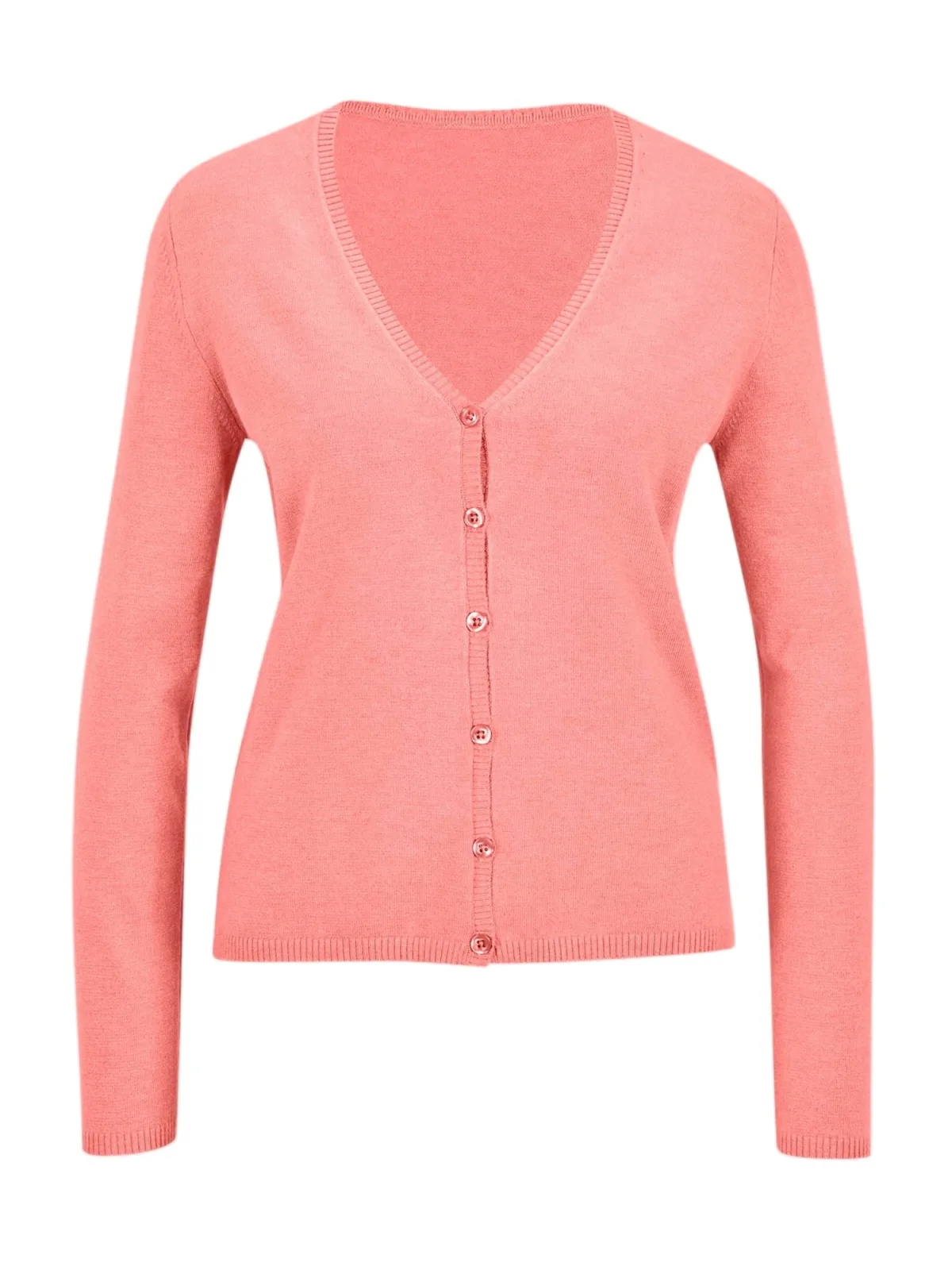 Design: Knop placket; Type sluiting: Knoopsluiting; Materiaal: Knitwear; Halstype: V-hals; Motief: Mélange; Extra's: Voelt zacht aan; Pasvorm: Aansluitende pasvorm; Armlengte: Lange mouw; Lengte: Normale lengte
