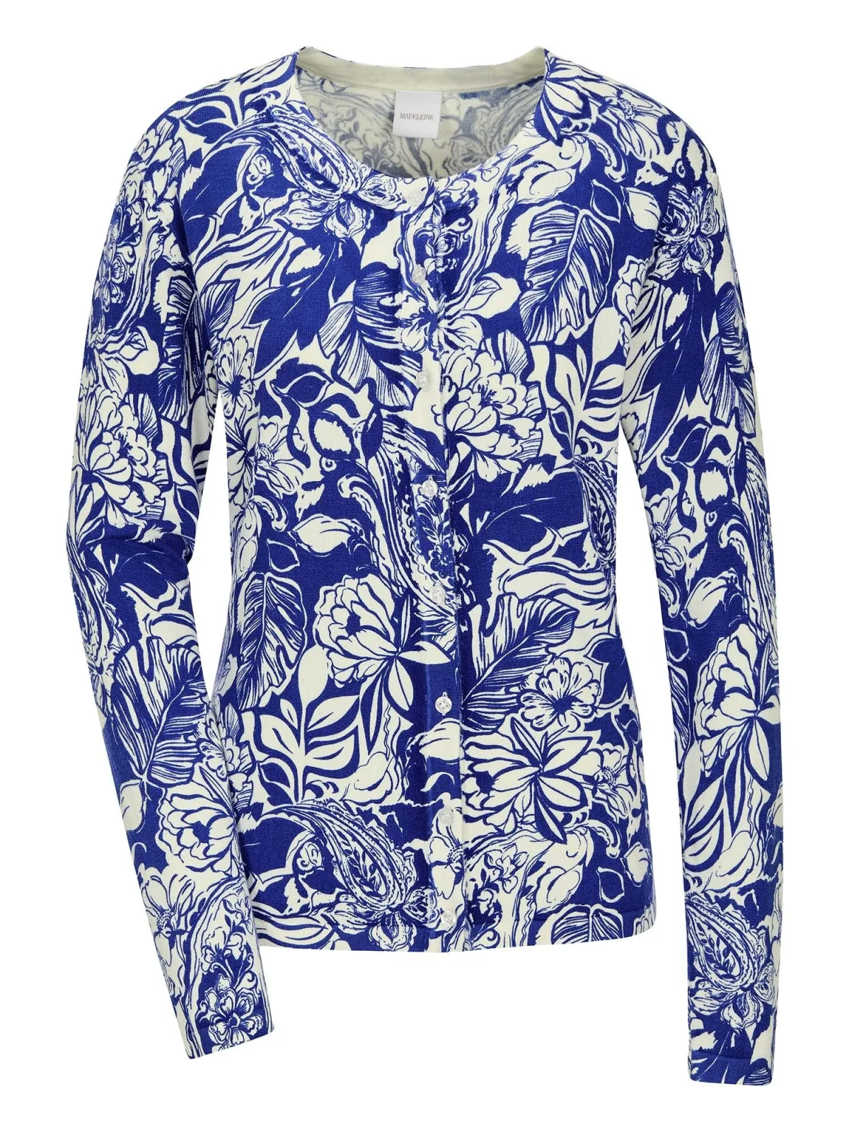 Design: Knop sluiting; Type sluiting: Open; Materiaal: Viscose; Halstype: Ronde hals; Motief: Bloemenprint; Extra's: All-over patroon; Pasvorm: Aansluitende pasvorm; Armlengte: Lange mouw; Lengte: Normale lengte