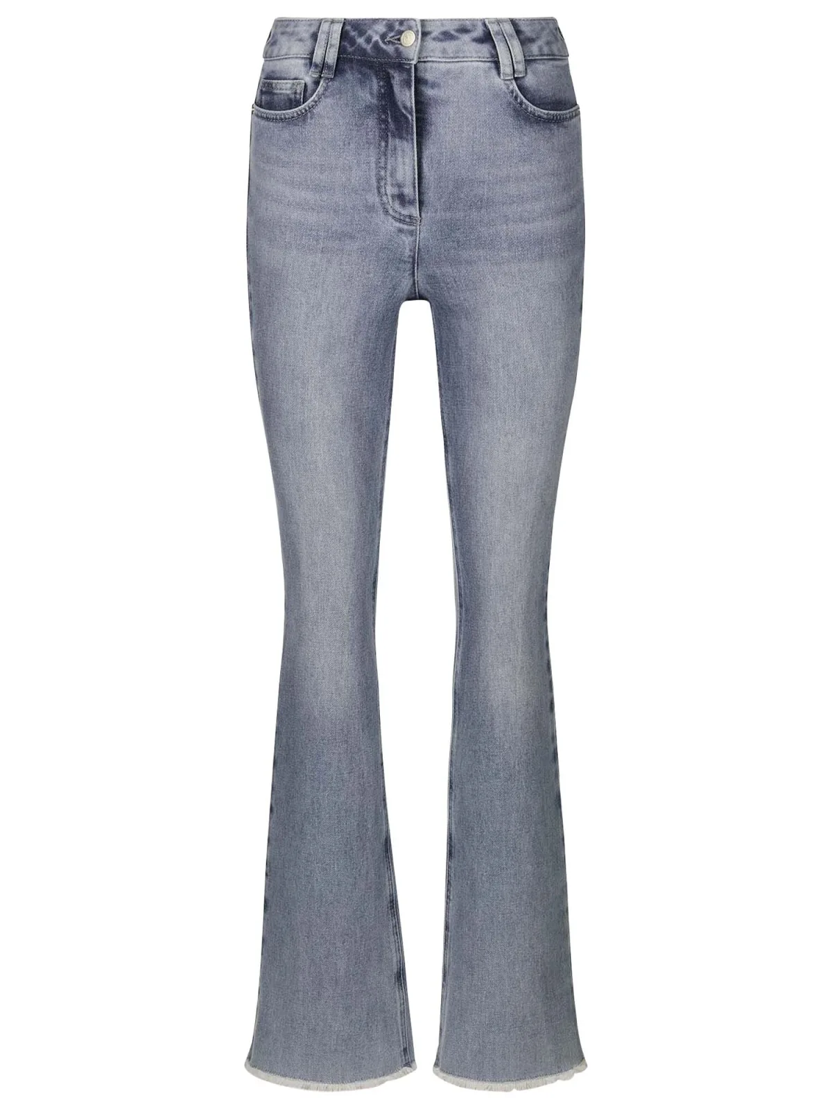 Design: Gefranjerde zoom, 5-pocket-style; Type sluiting: Ritssluiting; Materiaal: Denim; Motief: Effen; Details: Franjes; Extra’s: Vaste grip, Riemlussen; Wassing: Light washed; Lengte: Lang/maxi; Pasvorm: Flared; Taillehoogte: High waist