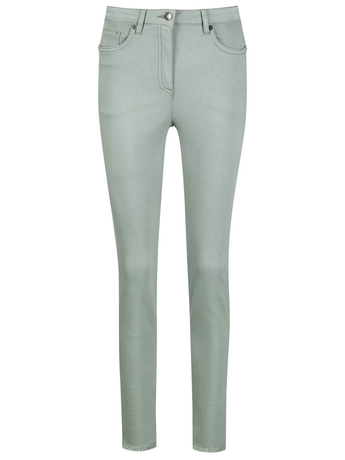 Design: Gefranjerde zoom, 5-pocket-style; Type sluiting: Ritssluiting; Materiaal: Denim; Motief: Effen; Details: Franjes; Extra's: Riemlussen; Wassing: Colored denim; Lengte: 7/8 lengte; Pasvorm: Skinny; Taillehoogte: Mid waist