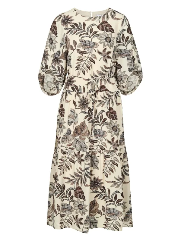 Design: Tailleriem; Type sluiting: Open; Materiaal: Viscose; Halstype: Ronde hals; Motief: Bloemenprint; Details: Gedrapeerd; Extra's: All-over patroon; Lengte: 3/4 lengte; Snit: Getailleerd; Pasvorm: Normale pasvorm; Armlengte: Halve mouw