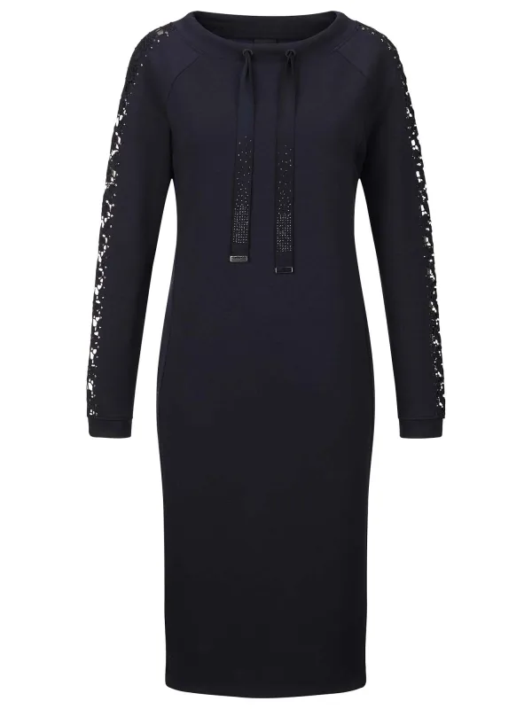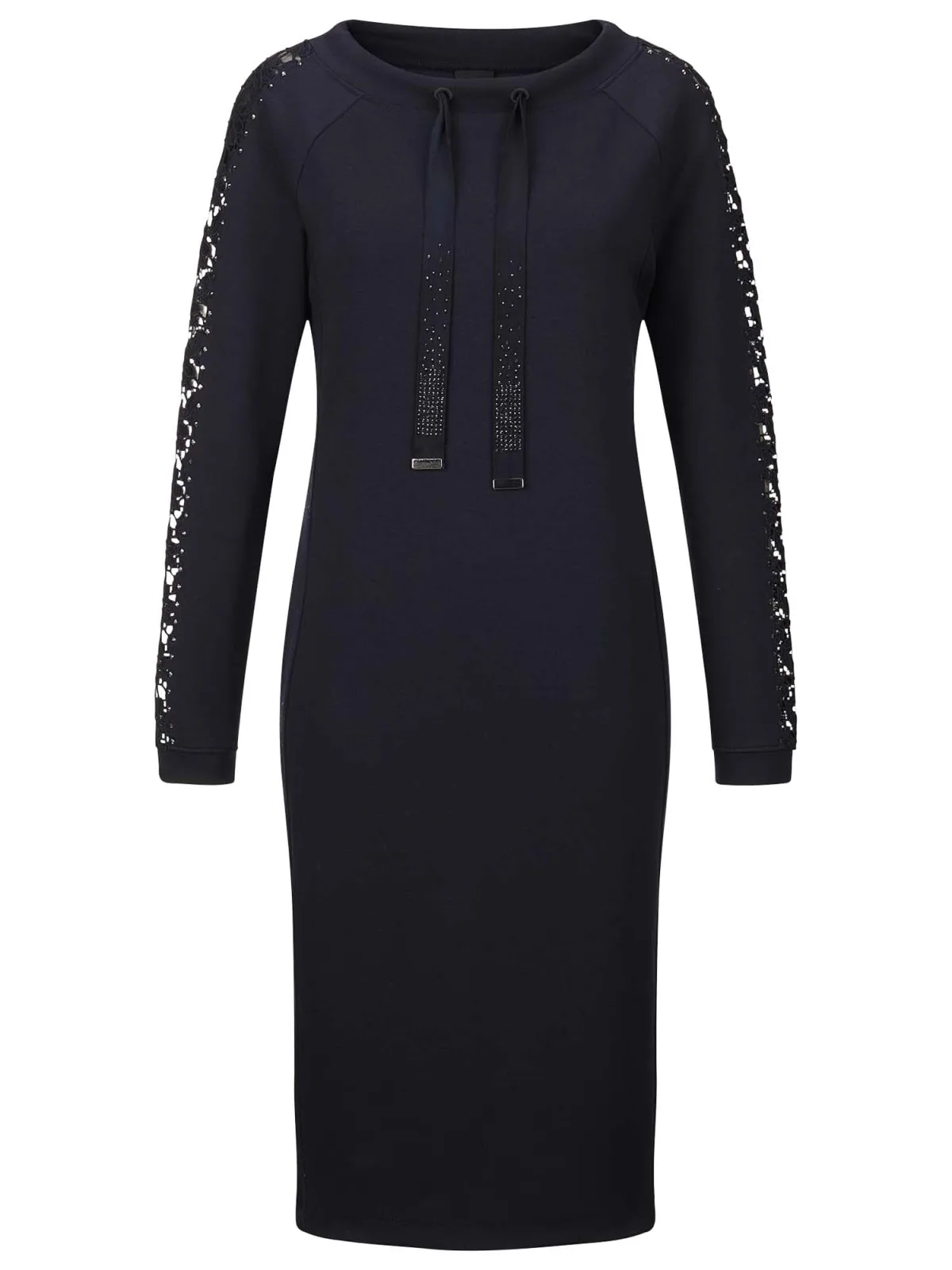 Design: Gevoerde zoom/rand; Type sluiting: Open; Materiaal: Sweatstof; Halstype: Ronde hals; Motief: Effen; Details: Kant, Sierstenen; Extra's: Voelt zacht aan; Lengte: Knielengte; Snit: Recht; Pasvorm: Normale pasvorm; Armlengte: Lange mouw