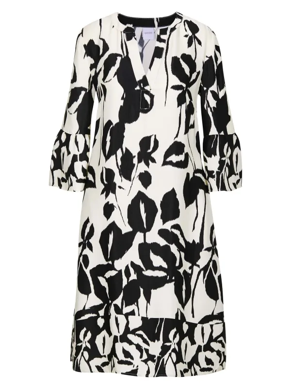 Design: Gevoerde zoom/rand, Rechte zoom, Zijdelingse inkepingen; Materiaal: Viscose; Halstype: V-hals; Details: Gedrapeerd; Extra's: All-over patroon, Voelt zacht aan; Lengte: Knielengte; Snit: Uitlopend; Pasvorm: Losse pasvorm; Armlengte: Driekwart mouw
