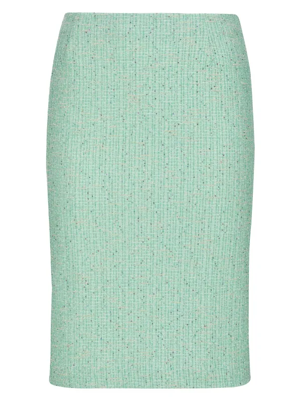 Design: Zijdelingse inkepingen; Type sluiting: Open; Materiaal: Viscose; Rokvorm: Kokerrok; Extra's: Op staal naden; Lengte: Knielengte; Pasvorm: Aansluitende pasvorm