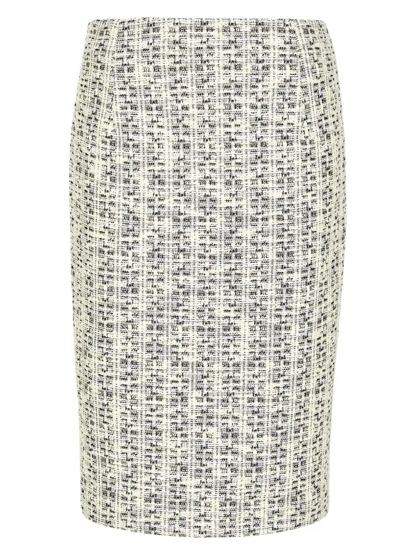 Design: Rechte zoom; Type sluiting: Ritssluiting; Materiaal: Bouclé; Rokvorm: Kokerrok; Details: Pailletten; Extra's: All-over patroon; Lengte: Knielengte; Pasvorm: Slanke pasvorm