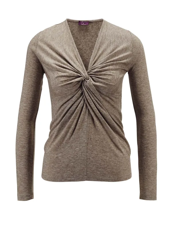 Design: Getailleerd model, Diepe snit/decolleté; Materiaal: Jersey; Halstype: V-hals; Motief: Mélange; Extra’s: Voelt zacht aan; Pasvorm: Slanke pasvorm; Armlengte: Lange mouw; Lengte: Normale lengte