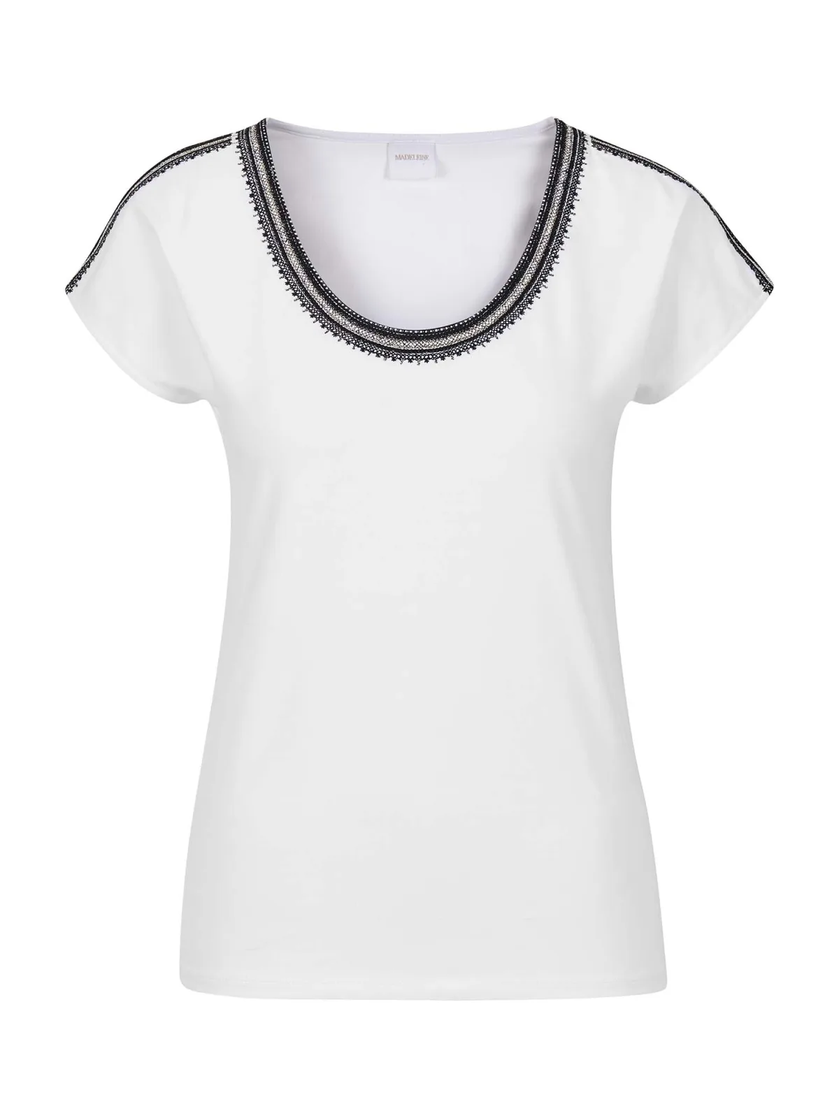 Design: Gevoerde zoom/rand; Materiaal: Jersey; Halstype: Ronde hals; Motief: Effen; Details: Kant; Extra's: Op staal naden; Pasvorm: Normale pasvorm; Armlengte: Kwartmouw; Lengte: Normale lengte