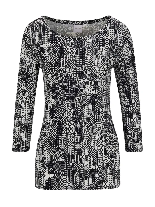 Design: Gevoerde zoom/rand; Materiaal: Jersey; Halstype: Boothals; Extra's: All-over patroon; Pasvorm: Slanke pasvorm; Armlengte: Driekwart mouw; Lengte: Normale lengte