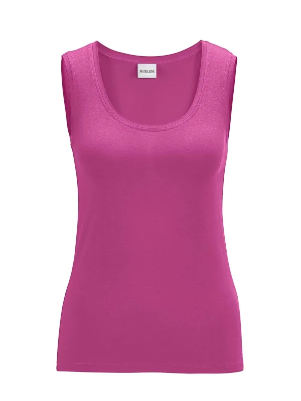 Design: Gevoerde zoom/rand; Materiaal: Viscose; Halstype: Ronde hals; Motief: Effen; Soort bandjes: Brede bandjes; Extra's: Op staal naden, Buigzame grip; Pasvorm: Slanke pasvorm; Armlengte: Mouwloos; Lengte: Normale lengte