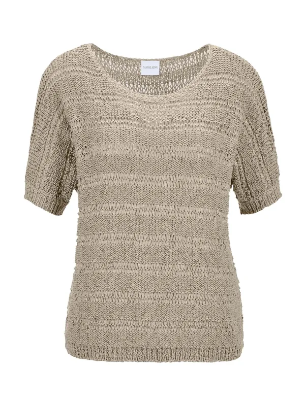 Design: Geribd ceintuurtje; Materiaal: Knitwear; Halstype: Ronde hals; Motief: Effen; Extra's: Voelt zacht aan; Pasvorm: Losse pasvorm; Armlengte: Kwartmouw; Lengte: Normale lengte