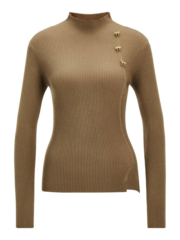 Design: Geribbeld gebreid, Zijdelingse inkepingen; Type sluiting: Open; Materiaal: Viscose; Halstype: Opstaande kraag; Motief: Effen; Extra's: Applicaties, Op staal naden; Pasvorm: Normale pasvorm; Armlengte: Lange mouw; Lengte: Normale lengte