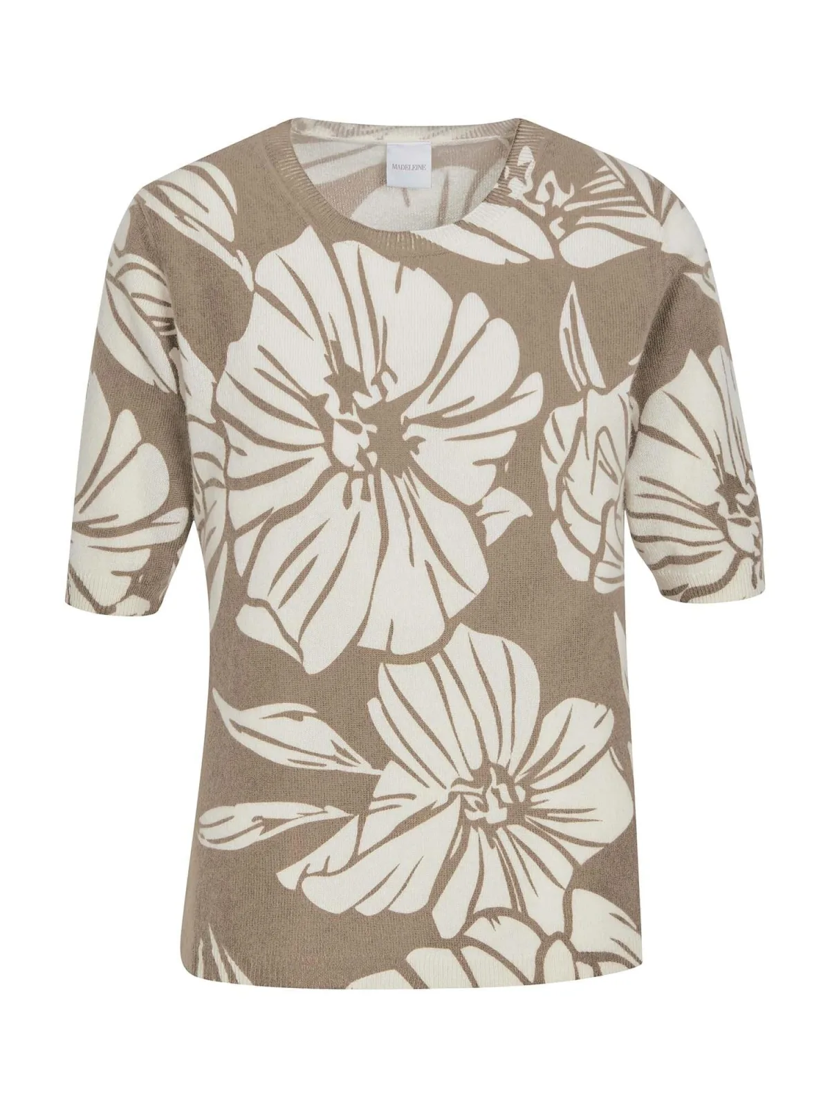Design: Rechte zoom; Materiaal: Knitwear; Halstype: Ronde hals; Motief: Bloemenprint; Extra's: Fully fashioned; Pasvorm: Normale pasvorm; Armlengte: Halve mouw; Lengte: Normale lengte