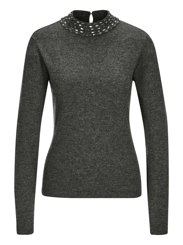 Design: Geribbelde kraag; Type sluiting: Knoopsluiting; Materiaal: Knitwear; Halstype: Opstaande kraag; Motief: Mélange; Details: Sierstenen; Extra's: All-over patroon, Op staal naden; Pasvorm: Normale pasvorm; Armlengte: Lange mouw; Lengte: Normale lengte