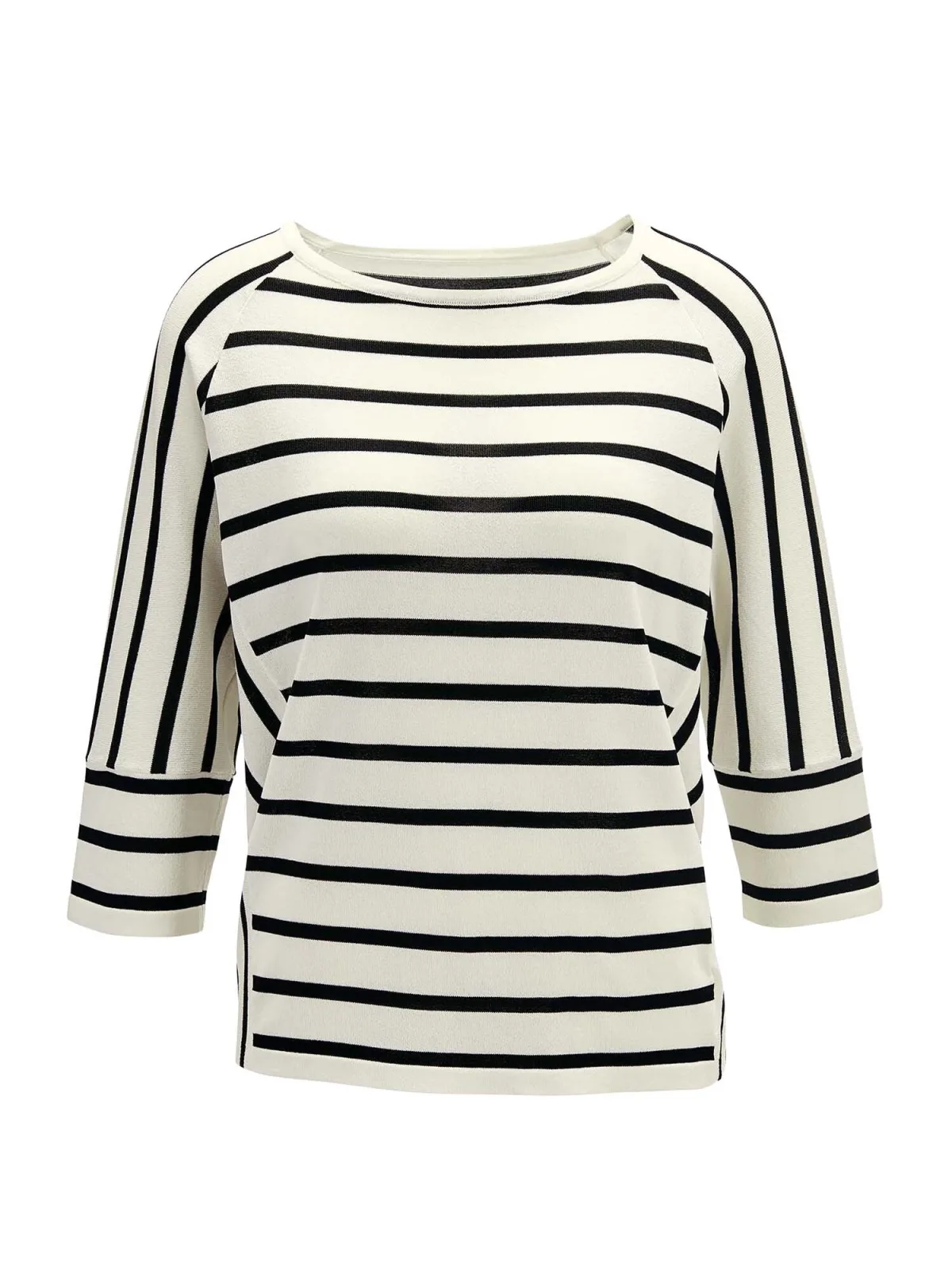 Design: Raglanmouwen; Materiaal: Knitwear; Halstype: Boothals; Motief: Gestreept; Extra’s: Koele grip; Pasvorm: Normale pasvorm; Armlengte: Driekwart mouw; Lengte: Normale lengte