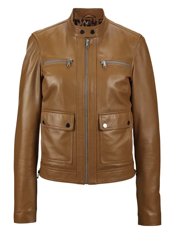 Design: Staande kraag; Type sluiting: Ritssluiting; Type jas: Bikerjack; Voering: Licht gevoerd; Materiaal: Leer; Motief: Effen; Extra's: Leer met fijne poriën; Pasvorm: Normale pasvorm