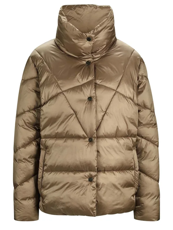 Design: Staande kraag; Type sluiting: Drukknoop; Type jas: Gewatteerde jas; Voering: Licht gevoerd; Motief: Effen; Extra's: Op staal naden, Gladde stof; Pasvorm: Normale pasvorm
