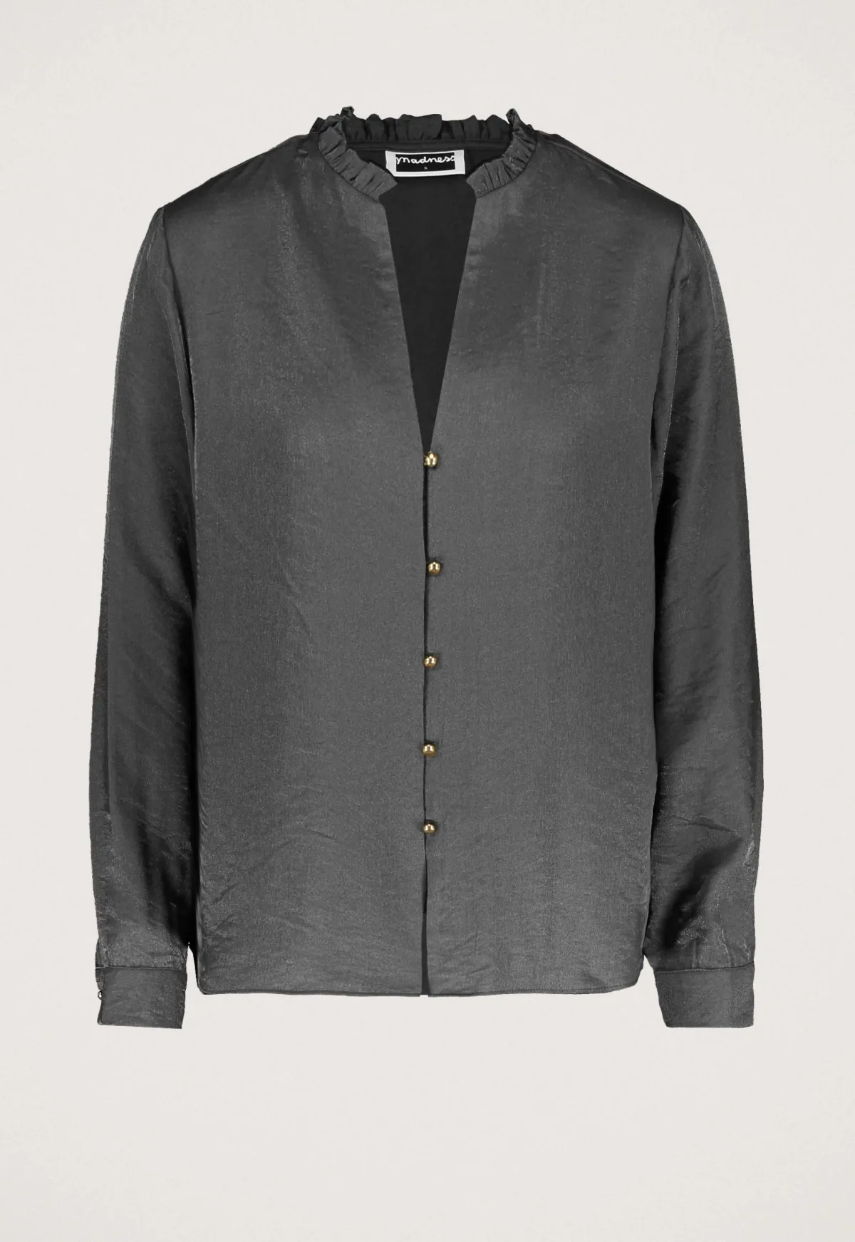 Dit is de Mema Blouse van het merk Madness. Deze blouse heeft een elegante pasvorm en is vervaardigd uit een mix van viscose en polyamide, wat zorgt voor een soepele en comfortabele uitstraling. De blouse wordt gekenmerkt door een lange mouwlengte en een praktische knoopsluiting, waardoor hij perfect is voor zowel casual als zakelijke gelegenheden.