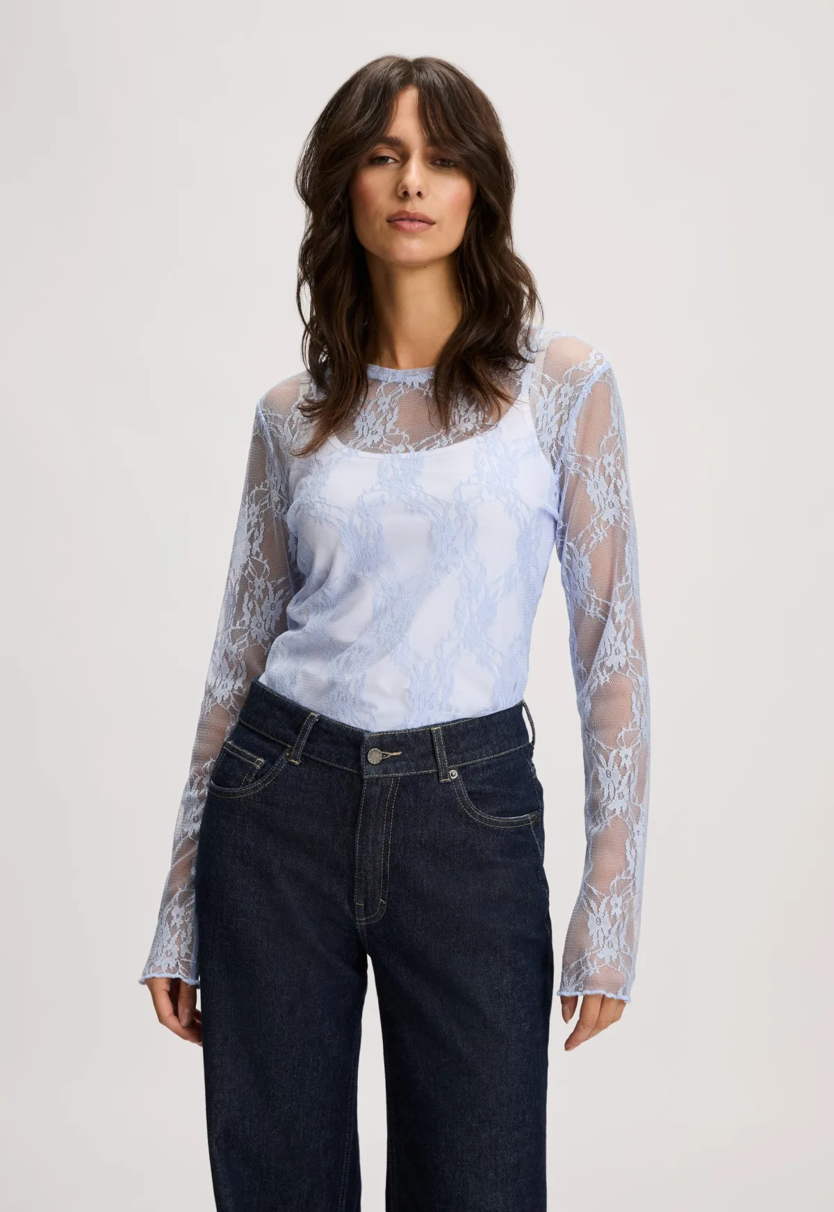 Dit is de Myka Longsleeve van het merk Madness. Deze longsleeve heeft een slim pasvorm, lange mouwen, ronde hals en is gemaakt van een doorschijnende kanten stof.