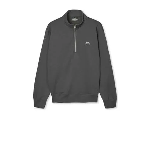 Deze trui van MADS NØRGAARD - COPENHAGEN heeft een regular fit en lange mouwen. De opstaande kraag en korte rits maken dit item af. Het logo valt op, de geribde boorden zijn fijn.