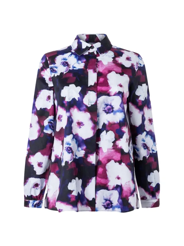Blouse type: Klassieke blouse; Design: Rugplooi; Type sluiting: Knoopsluiting; Materiaal: Katoen; Motief: Bloemenprint; Kraag: Kentkraag; Details: Plooien; Extra's: All-over patroon; Pasvorm: Losse pasvorm; Armlengte: Lange mouw; Lengte: Normale lengte