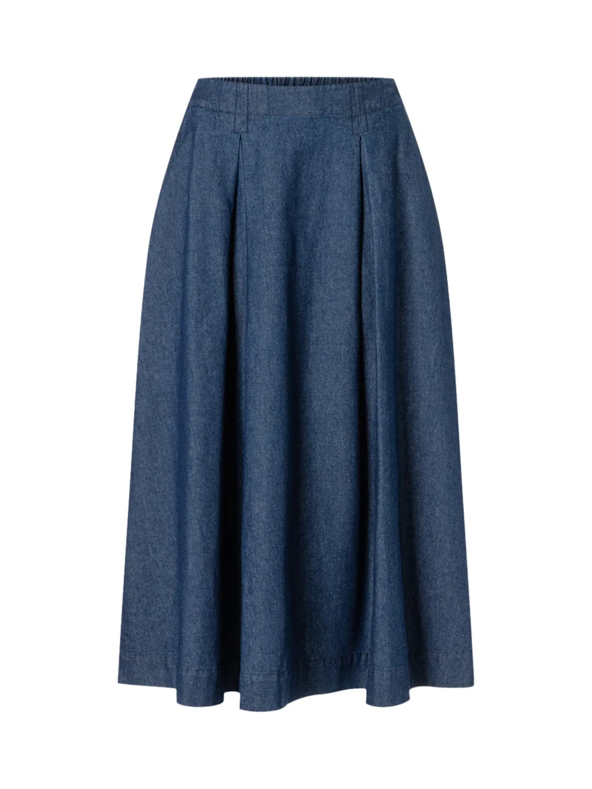 Design: Elastische taille/zoom, Zakken aan de zijkant; Materiaal: Denim; Motief: Mélange; Rokvorm: Plooirok; Details: Plooien; Extra's: Stevige stof; Lengte: 3/4 lengte; Pasvorm: Normale pasvorm; Taillehoogte: High waist