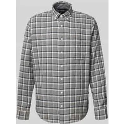 Design: 2-knoops manchetten, Placket, Ronde zoom, Borstzak; Type sluiting: Knoopsluiting; Materiaal: Jersey; Motief: Geruit; Kraag: Button-down; Extra's: All-over patroon; Pasvorm: Regular fit; Armlengte: Lange mouw