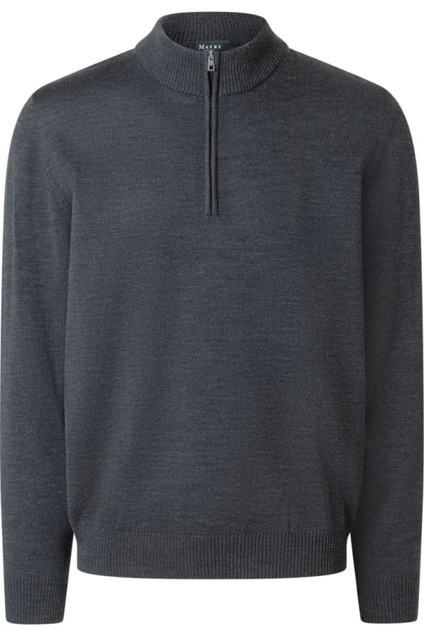 MAERZ Superwash Trui ritssluiting antraciet, Effen Prijzen