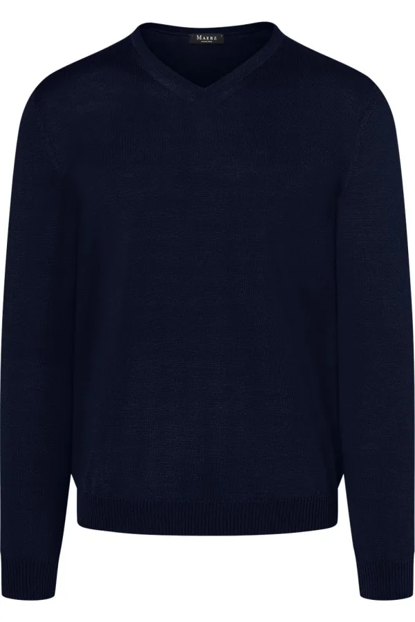- Bij Overhemden.com kun je MAERZ Superwash Trui V-hals donkerblauw, Effen kopen voor slechts €109,95