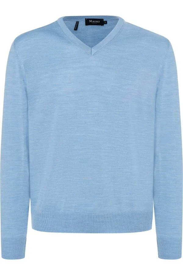 MAERZ Superwash Trui V-hals Dyson Blauw, Effen Prijzen