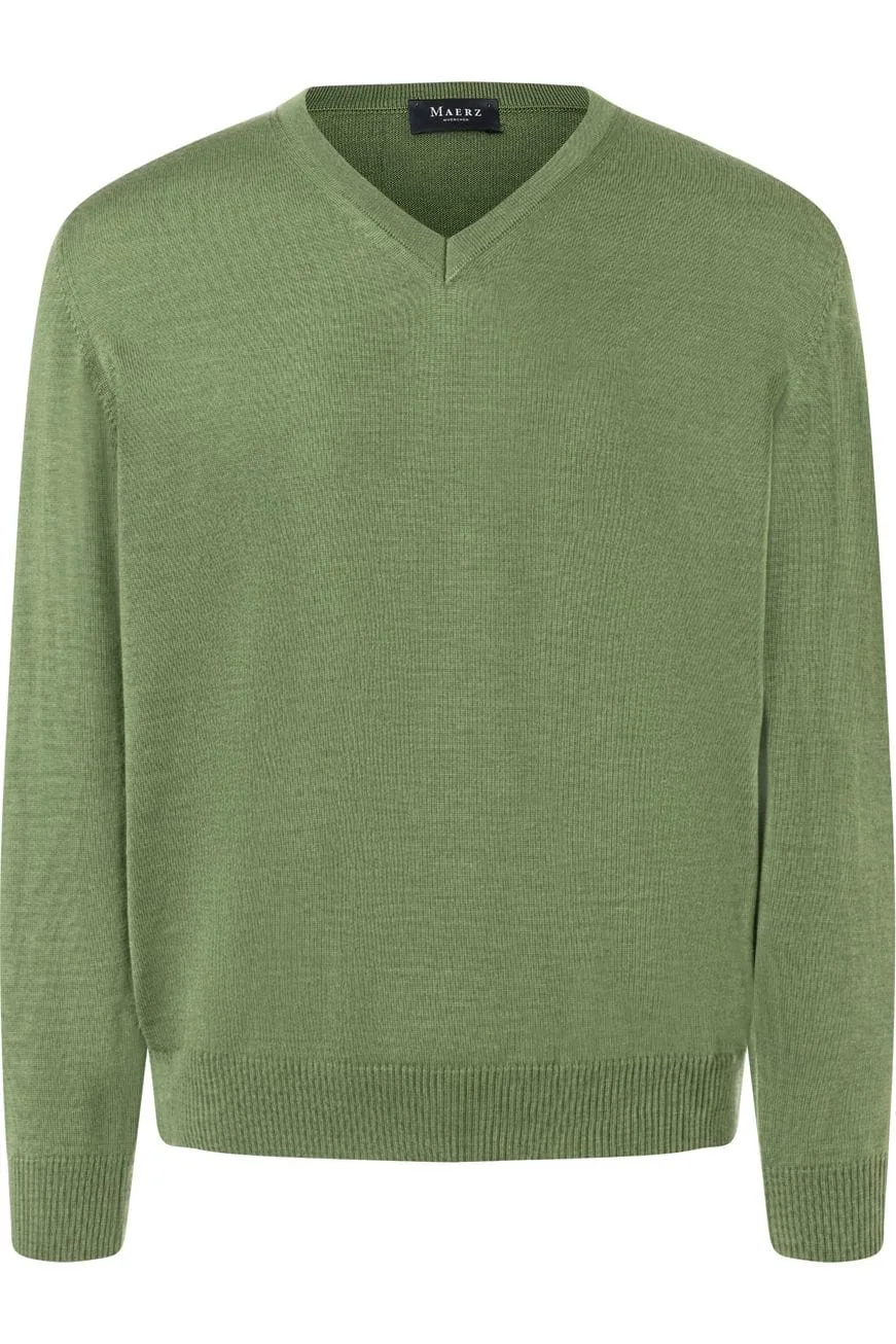 MAERZ Superwash Trui V-hals groen, Effen