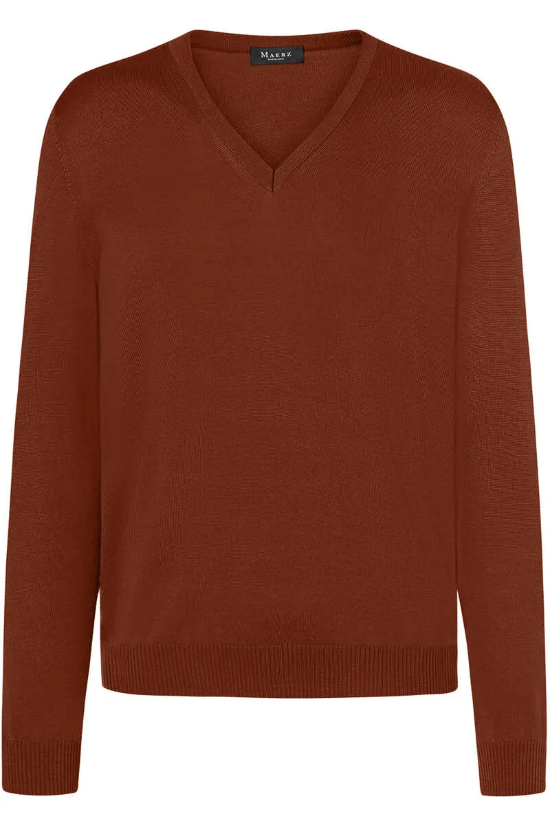 MAERZ Superwash Trui V-hals koper, Effen