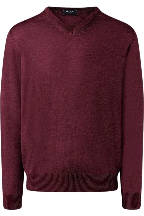 MAERZ Superwash Trui V-hals rood, Effen Prijzen