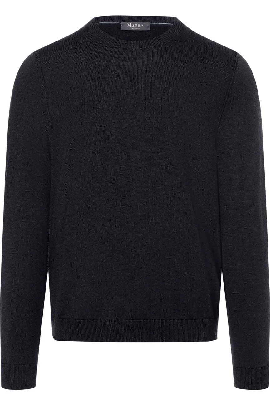 MAERZ Trui ronde halsdonkerblauw, Effen