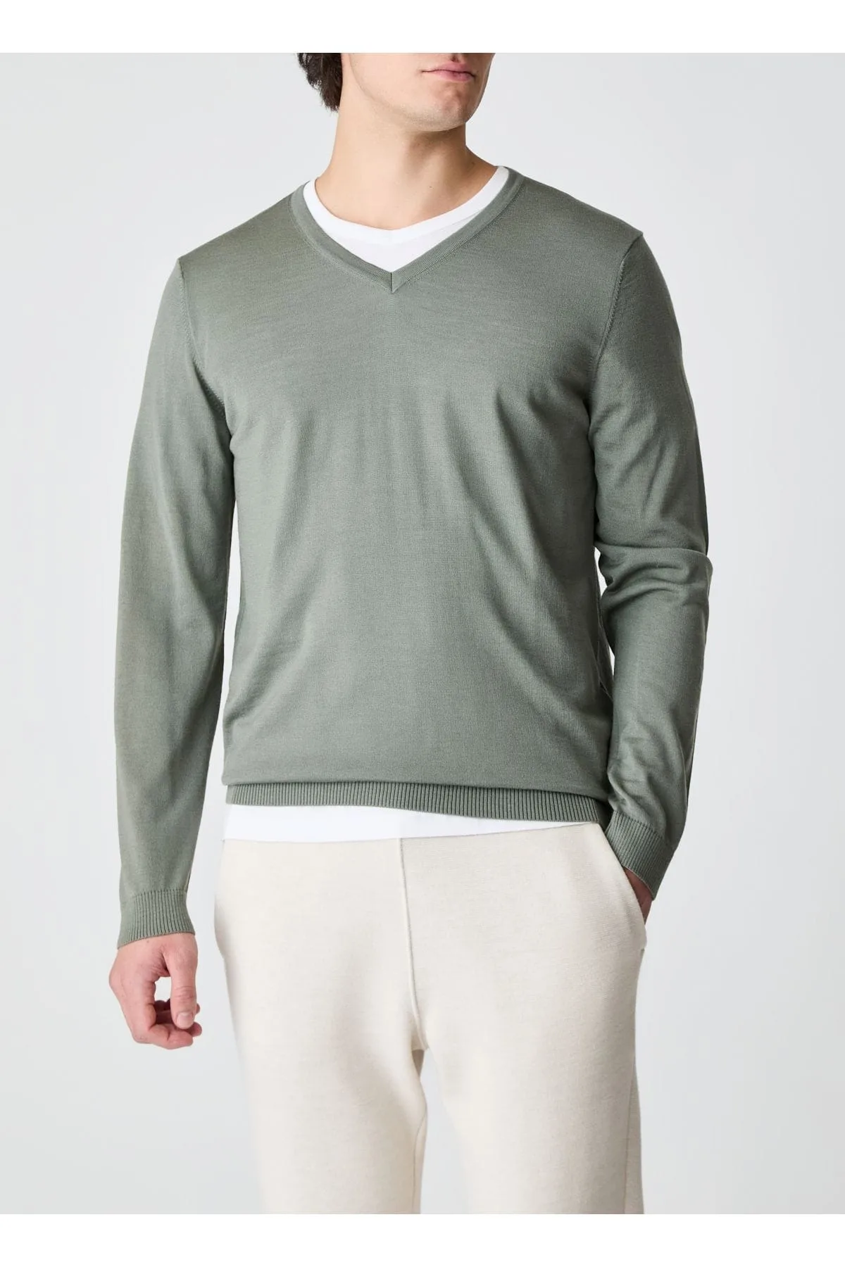 MAERZ Trui V-halsgroen, Effen Prijzen