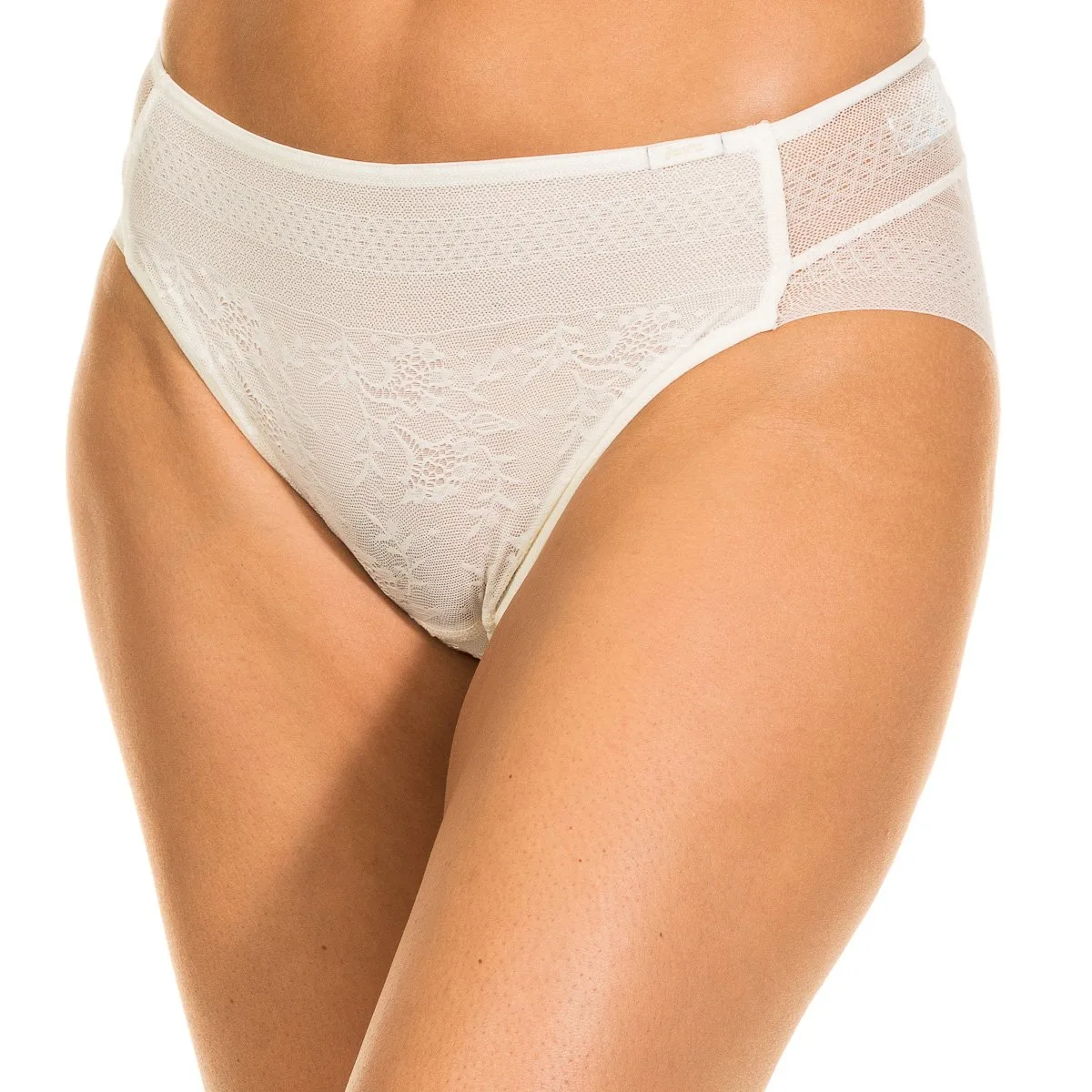 Magische bandpanty Janira Ruwe kleur Elastische tailleband, met stoflabel detail en de naam van de handtekening geborduurd op de zijkant. Semitransparante kanten stof, door het hele ontwerp. Zachte en aanpasbare stof. Stof houdt van en ademt, laat geen sporen na. Binnenvoering Naden in toon zichtbaar. Samenstelling: 88% Polyamide. - 12% Elastaan. Onderhoud: - Wassen op max. 30º temperatuur. - Geen bleekmiddel gebruiken. - Niet in de droger. - Niet strijken. - Niet chemisch reinigen.
