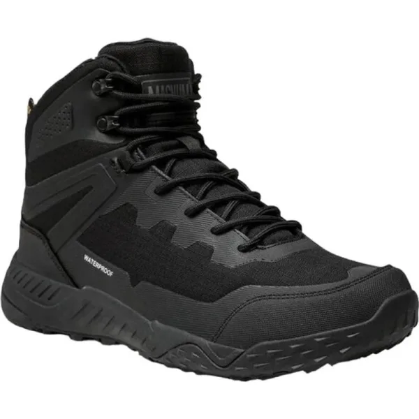 Boven: PU (Polyurethaan), Textiel. Voering: Cordura, Mesh. Binnenzool: Hi-Poly, Mesh, PU-schuim. Buitenzool: EVA, Phylon, Rubber. 7 Ogen. Stoftechnologie: Lichtgewicht, Waterdicht Membraan. Anatomisch gevormd voetbed, treklipje. Platte Hak. Snijding: Mid Cut. Ontwerp: Logo, Tekst. Teenstijl: Rond. Sluiting: Vetersluiting.